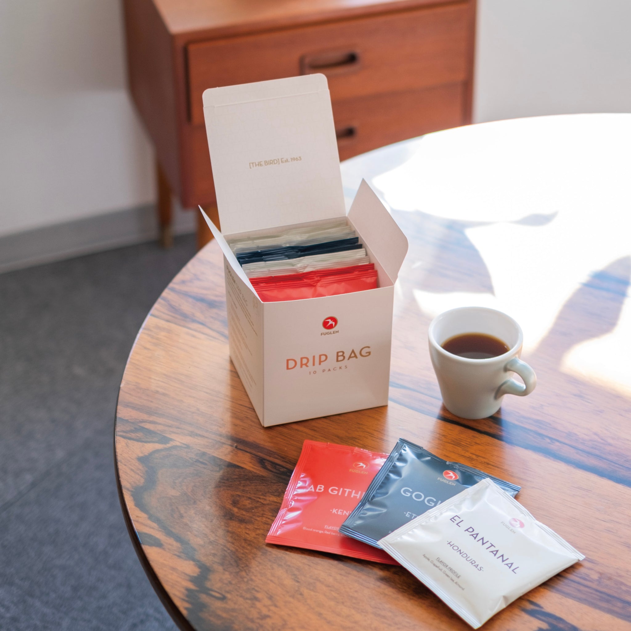 ドリップバッグギフトボックス ¥3,600以上のご購入で全国送料無料 ドリップバッグが10個入ったギフトボックスです。焙煎士がその時期におすすめのコーヒーを2種類選んでお届けします。 単品でのご購入はこちらから可能です。一個ずつ購入もできるので、コーヒー豆を買う前に試しに飲んでみたいときや、お友達のプレゼントにどうぞ🎁 このドリップバッグは、袋に入る粉の量にこだわって作りました。通常のドリップバッグ は12gが主流ですが、私たちは一回り大きいバッグに14gのコーヒー粉を入れました。マグカップでたっぷり抽出できるサイズです。 推奨湯量は200~230gです。挽きたての風味をできるだけ長く保つため、窒素ガスを充填しています。 旅先や、身軽に美味しいコーヒーを楽しみたいときにぜひ、お試しください☕️ ※オンラインストアでご購入の際は、発送先住所を指定できます。遠方の方へのプレゼントとしてもご利用下さい!※納品書がご不要の場合は、カート内の備考欄にご記入下さい。※ギフトラッピングのご用意はありません。※オンラインストア販売に関しては、coffeeonline.jp@fuglen.noまでお問い合わせ下さい。 ドリップバッグのお得で便利なサブスクリプションはこちら 配送についてはこちらから。 納品書がご不要の方は、カート内の備考欄にご記入下さい。International customers can visit our online store in English by clicking the link below.Online Store in EnglishIf you have any other questions, please contact us using the contact...